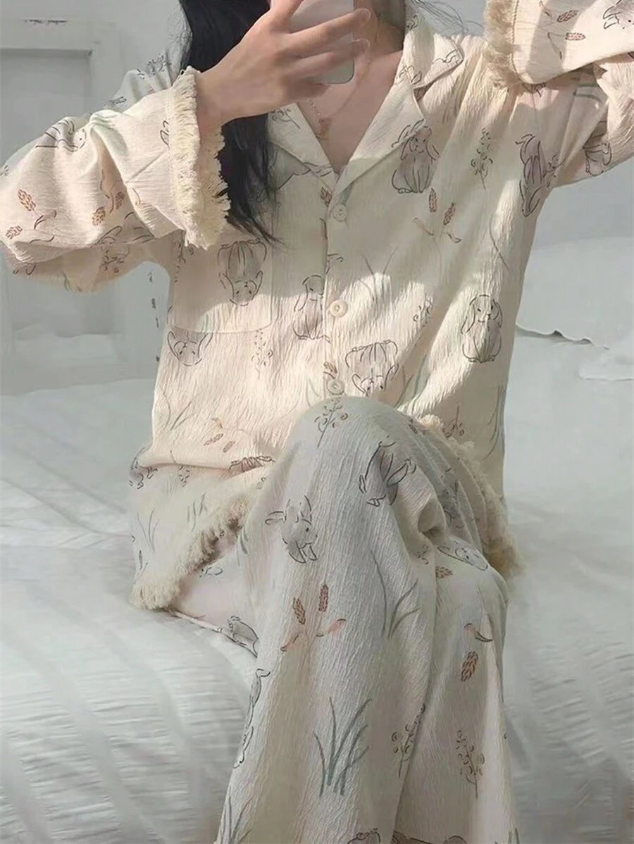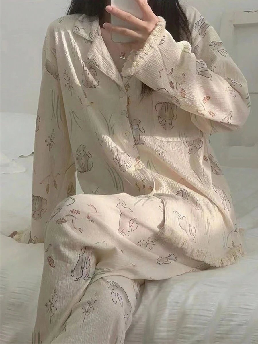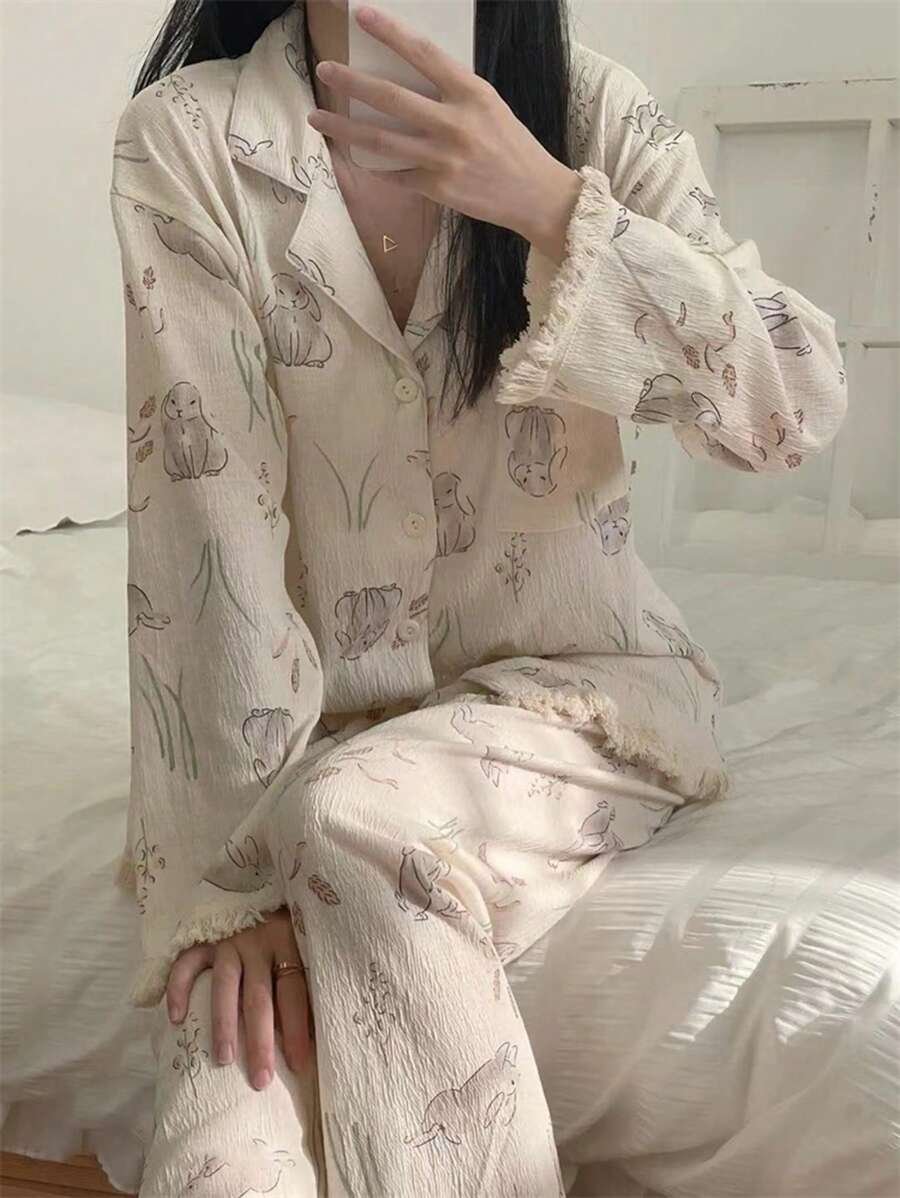 - اسم المنتج: بيجامه بطباعة الأرنب