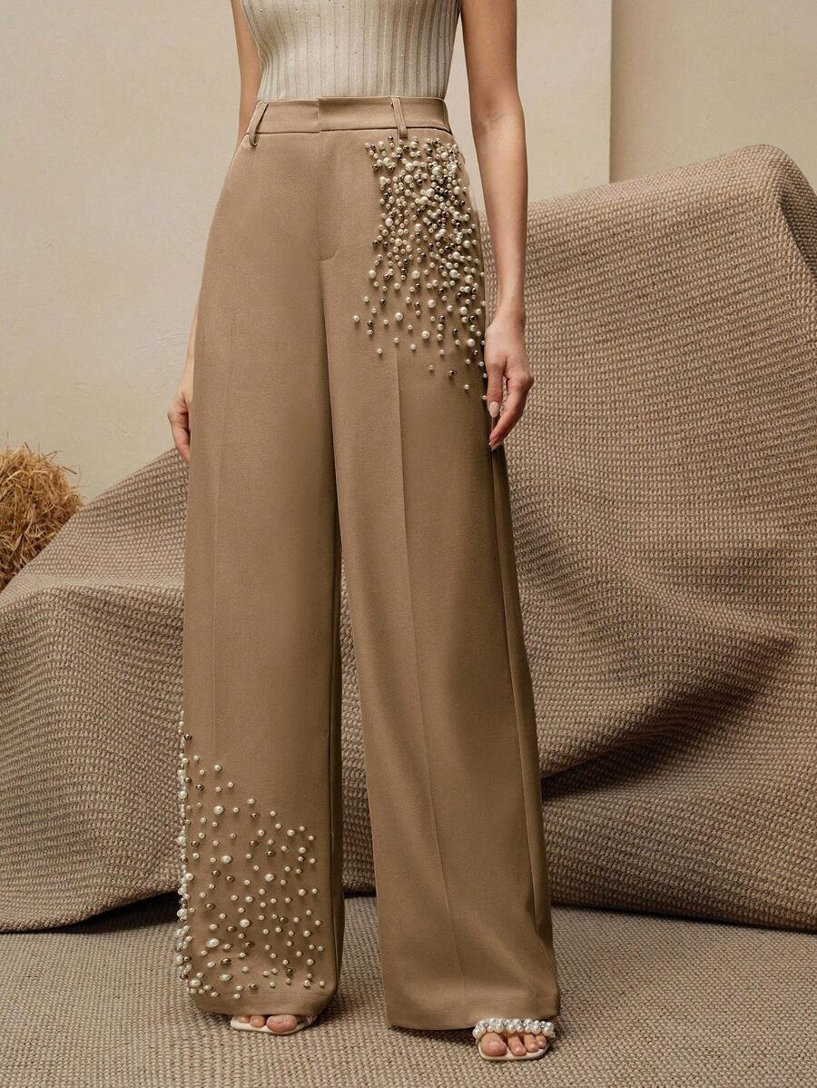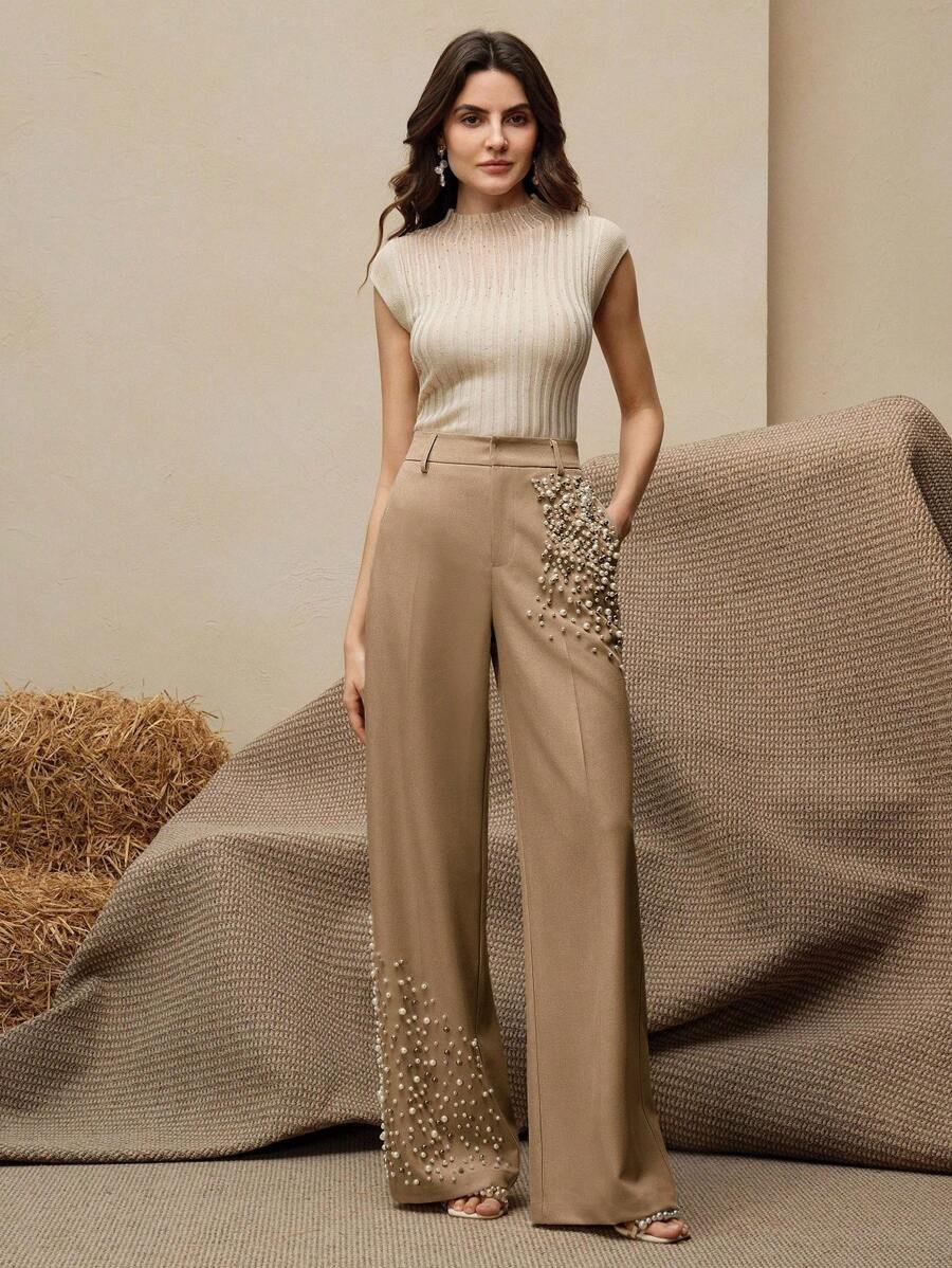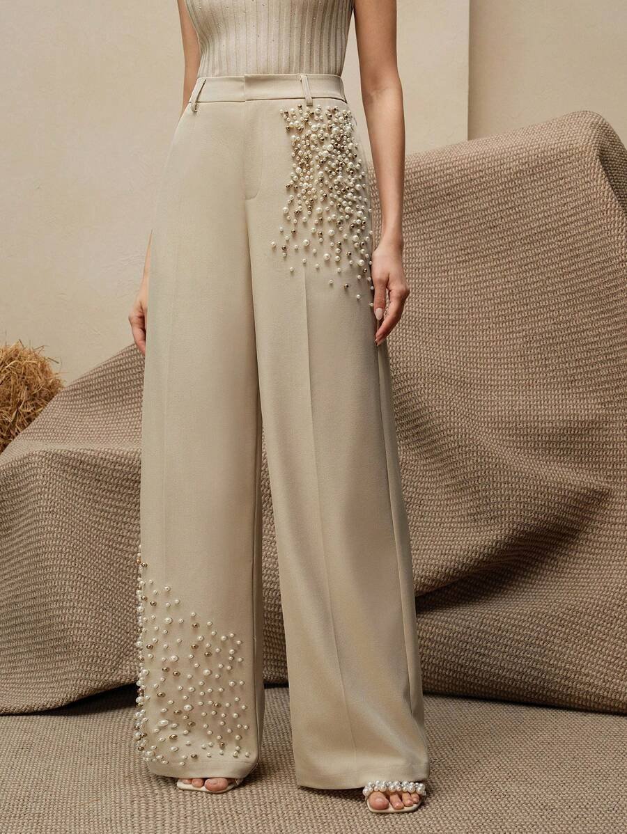 - اسم المنتج: بنطال أنيق مطرز باللؤلؤ