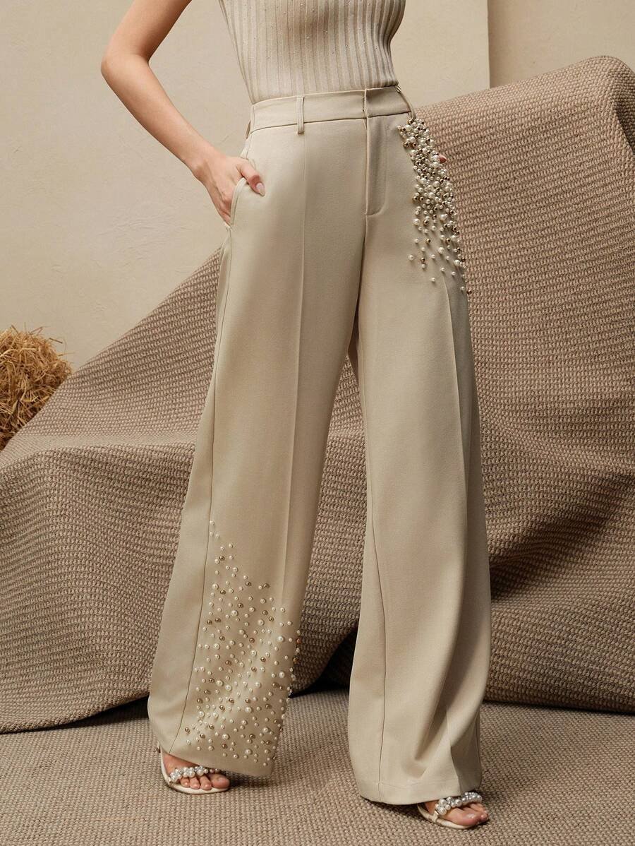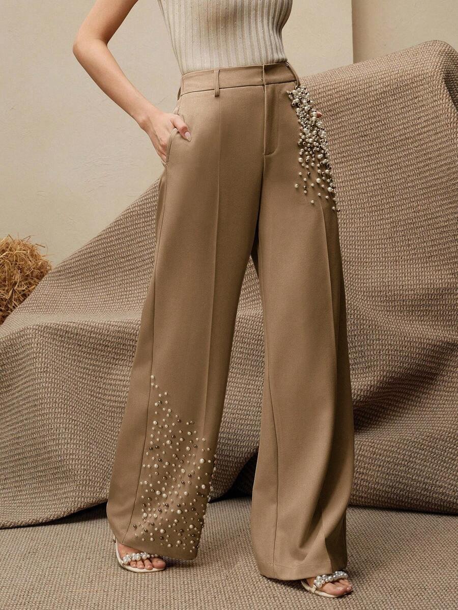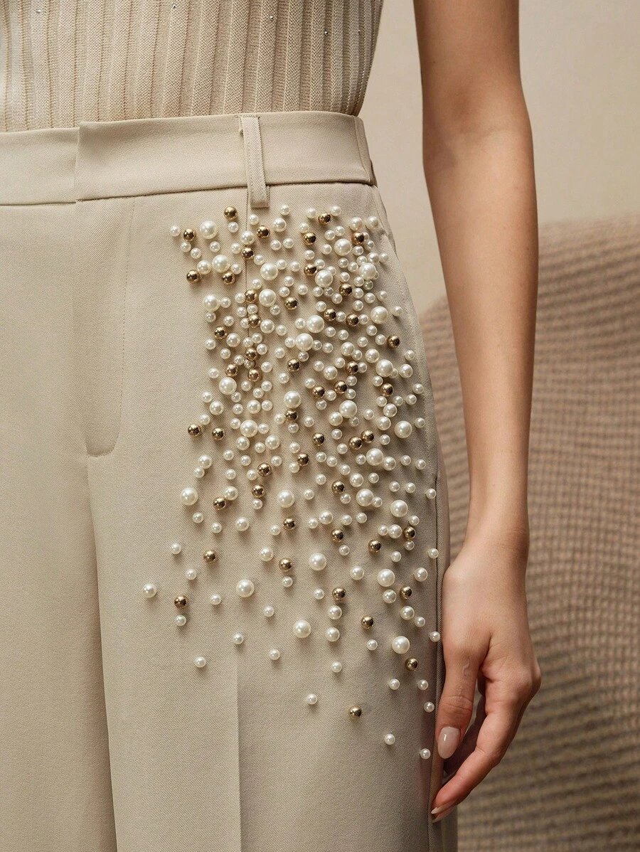 - اسم المنتج: بنطال أنيق مطرز باللؤلؤ